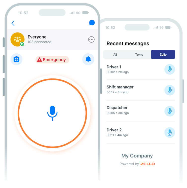 Zello—one of the world’s leading push-to-talk apps—transforms Android, iOS, and Windows PC platforms into walkie-talkies through the power of live voice push-to-talk functionality. Our feature-rich platform securely connects your team in a private, managed, and reliable environment for seamless collaboration and connectivity when it matters most.